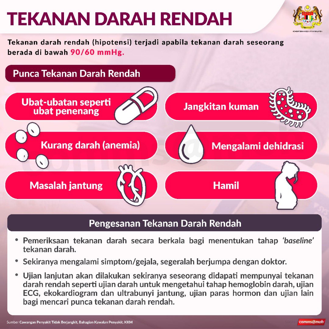 Jika anda ditimpa simptom tekanan darah rendah, periksa kembali tahap kesihatan anda. Tekanan darah rendah berlaku kerana jumlah darah yang mengalir ke organ utama seperti otak dan buah pinggang agak perlahan dengan tekanan darah di bawah 90/60. A) tekanan darah rendah 'orthostatic'. Bagi individu lain pula, terdapat beberapa keadaan atau faktor yang menyebabkan tekanan darah jatuh di bawah paras normal, sehingga mendatangkan simptom seperti pening, pengsan atau keadaan yang lebih teruk dipanggil 'shock'. #lifestyle #wellness #kidneys #dialysis #haemodialysis #ginjal #buahpinggang #dialisis #ohmyginjal #omg #davitamalaysia.